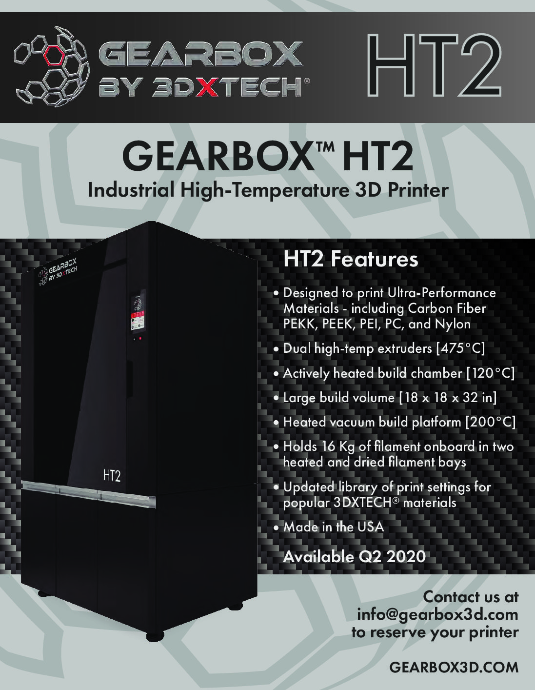 - BRONZE: Is included with the Gear Box HT 3D Printer